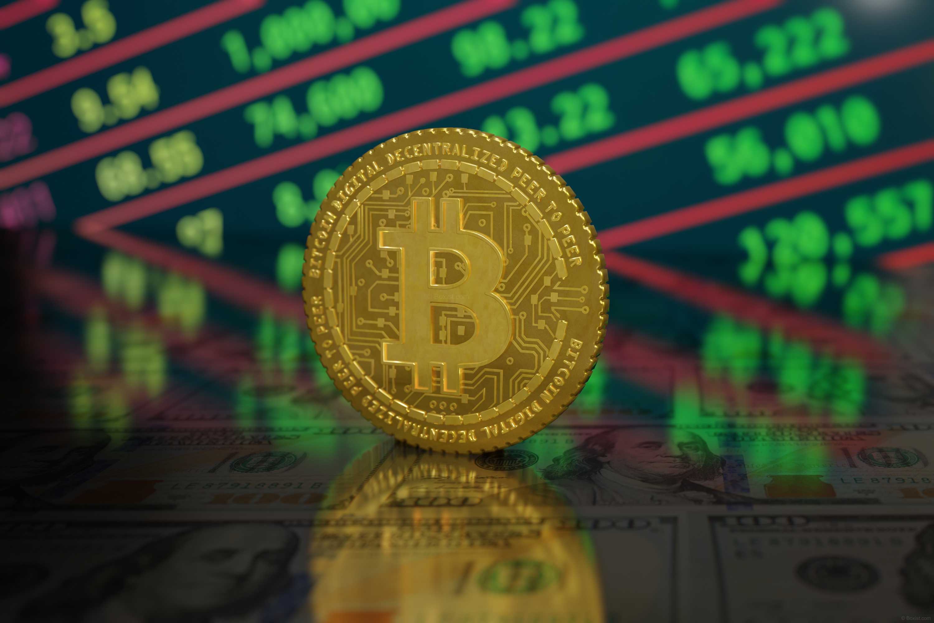 In this 3D design image, we’re presented with a golden Bitcoin cryptocurrency coin positioned prominently against the backdrop of a business chart. The golden hue of the Bitcoin coin gleams under the light, accentuating its value and significance in the world of digital currency. In the background, a business chart with various numbers related to the stock and currency market serves as a symbolic representation of the financial landscape. The chart may depict fluctuations in stock prices, currency exchange rates, or other relevant financial data, emphasizing the dynamic nature of the market. The juxtaposition of the Bitcoin coin against the business chart suggests the growing influence and relevance of cryptocurrencies in the global economy. As digital assets like Bitcoin continue to gain traction, they have become an integral part of discussions surrounding investment strategies and financial planning. Overall, this close-up view highlights the intersection of traditional financial markets with emerging technologies like cryptocurrency. It underscores the evolving nature of finance and the increasing importance of digital currencies in shaping the future of economic transactions.