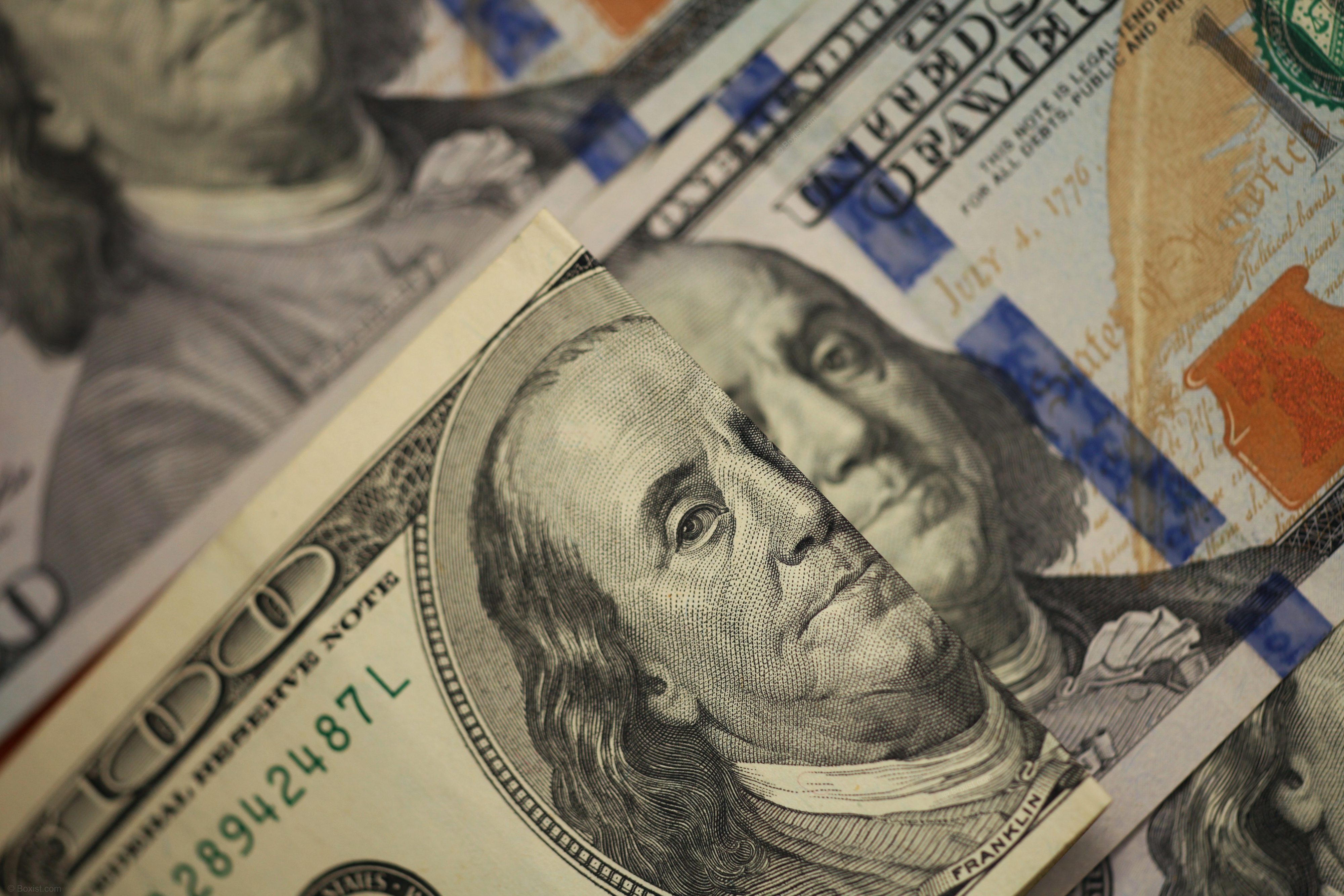 In this macro closeup image, a new and an old one hundred dollar bill are juxtaposed next to each other, inviting viewers to compare the differences between the two. The focus of the image is on the portrait of Benjamin Franklin, which is prominently featured on both notes. On the old series bill, Franklin’s portrait may appear more worn and faded, reflecting the passage of time and extensive circulation. The details of his features may be less distinct, but his iconic presence still commands attention. In contrast, the new series bill showcases Franklin’s portrait with greater clarity and crispness, thanks to modern printing techniques and improved security features. Every line and contour of his face is rendered with precision, capturing the essence of his likeness in stunning detail. This close-up view offers a fascinating glimpse into the evolution of currency design and printing technology, while also highlighting the enduring legacy of Benjamin Franklin as a founding father and statesman.