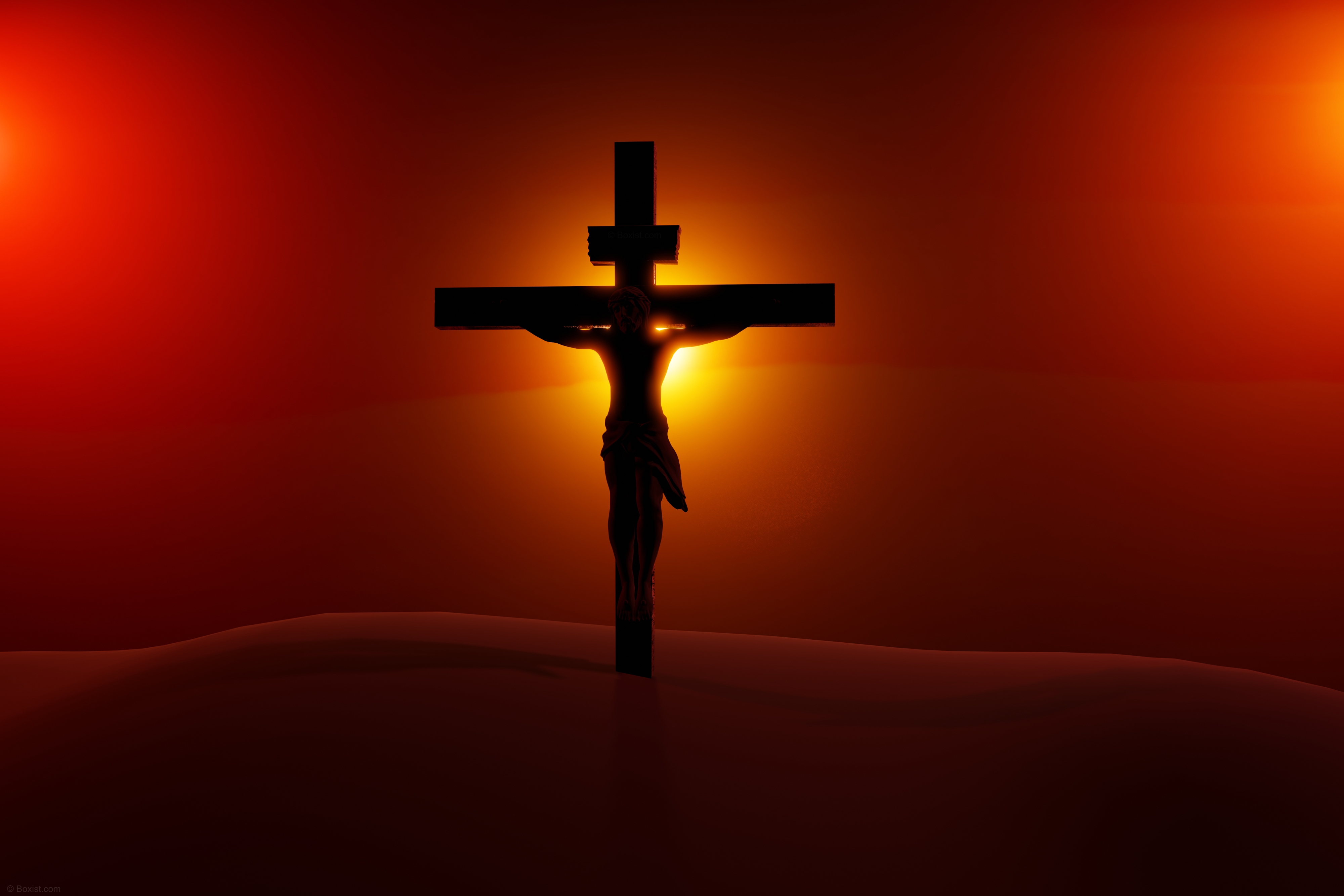 In this concept 3D design image, the silhouette of Jesus Christ is depicted crucified and hanging on the cross against a dark orange-red sky at sunset. The scene is imbued with a sense of solemnity and spiritual significance, as the setting sun casts its warm glow over the landscape. Behind Jesus’ body and the cross, the sun’s rays burst forth, bathing the scene in soft yellow light. This ethereal illumination serves as a symbolic representation of divine presence and grace, offering hope and solace amidst the darkness of the crucifixion. The cross is situated on a hill, emphasizing the elevated nature of the crucifixion site and invoking imagery of Calvary. Though the silhouette of Jesus’ body appears dark against the backdrop of the sky, upon closer inspection, subtle details of his body, face, and head can be discerned. These details serve to humanize the figure of Jesus and invite viewers to contemplate the profound significance of his sacrifice. Overall, this concept 3D design captures the emotional and spiritual weight of the crucifixion, inviting viewers to reflect on the enduring message of love, redemption, and hope embodied by the figure of Jesus Christ.