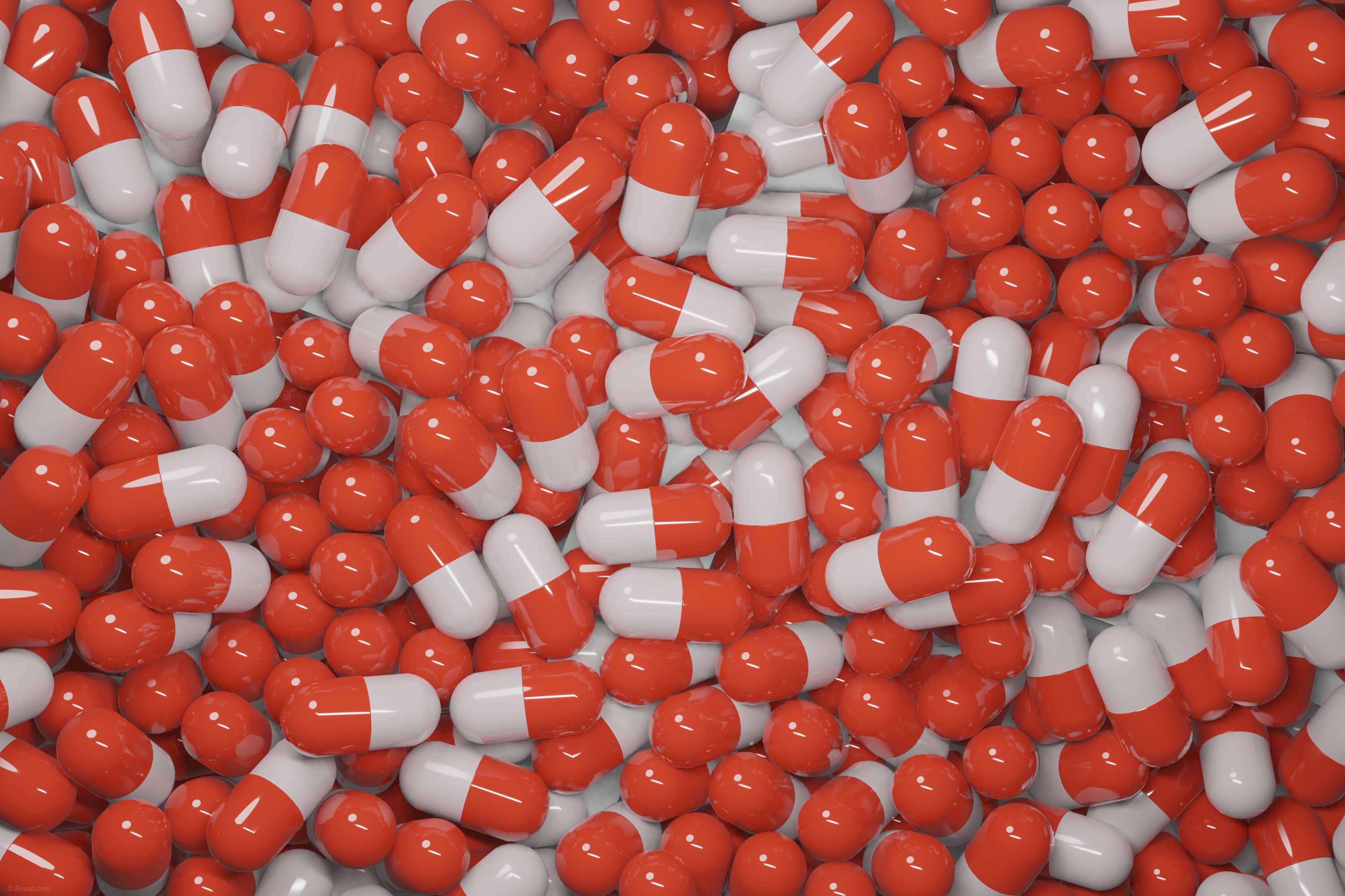 This image captures a large pile of orange and white shiny medicine capsules, stacked atop each other in a captivating display. The glossy texture of the capsules gleams under the light, creating a mesmerizing visual effect as reflections dance across their surface. The vibrant orange and white colors of the capsules add depth and dimension to the composition, creating a striking contrast against each other. The sheer quantity of capsules in the pile suggests abundance and perhaps the importance of medication in healthcare. Overall, this view offers a compelling perspective on the pharmaceutical industry and the role of medicine in maintaining health and well-being.