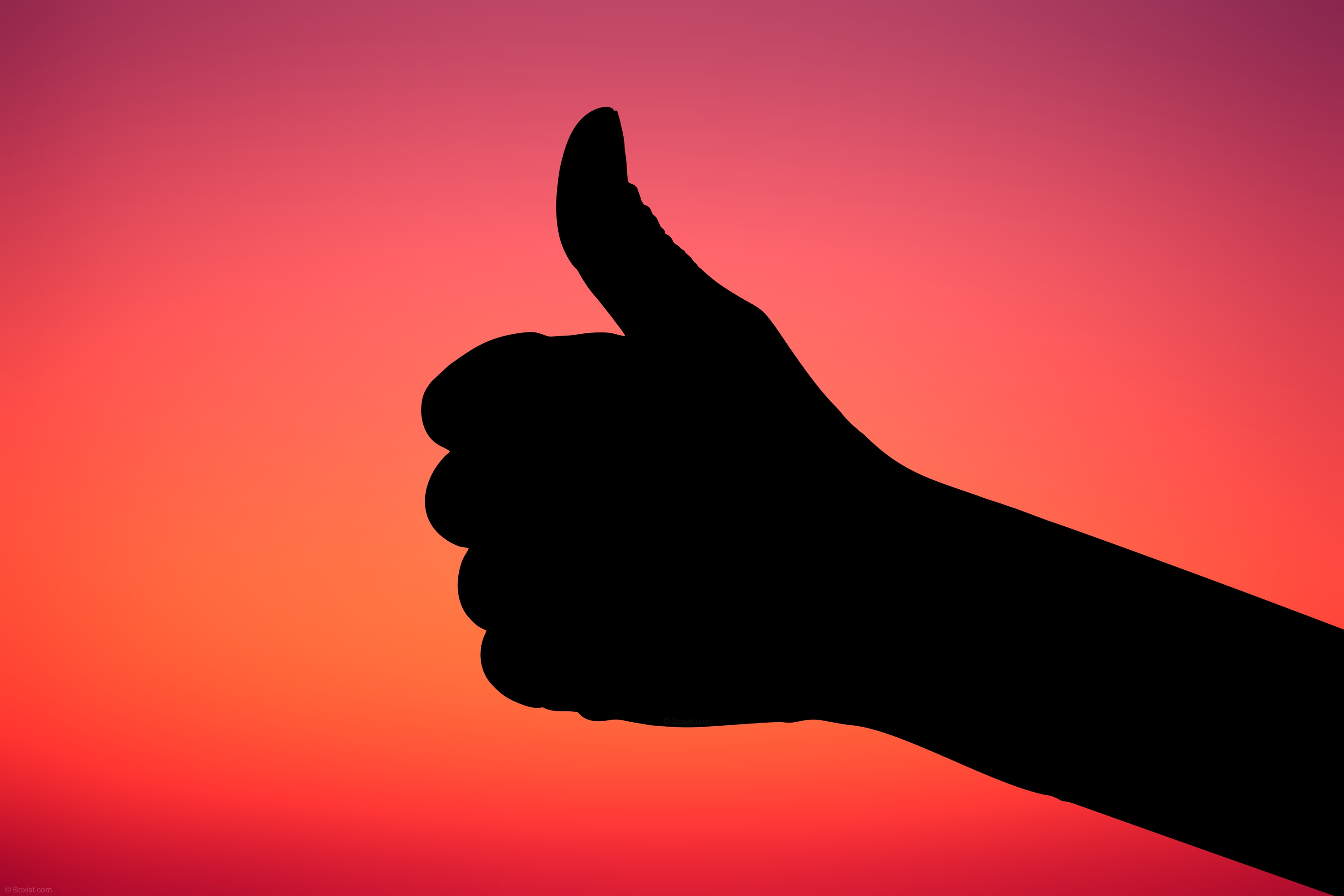 In this closeup image, we witness the silhouette of a hand with the thumb raised in a thumbs-up gesture against a vibrant backdrop of pink and purple sky. The hand, depicted in striking black silhouette, stands out boldly against the colorful hues of the sky. The thumb-up gesture is universally recognized as a symbol of approval, positivity, and encouragement. Its silhouette against the vibrant sky background adds a touch of optimism and positivity to the scene, evoking feelings of affirmation and appreciation. The pink and purple sky background lends a sense of serenity and beauty to the composition, creating a visually captivating contrast with the stark black silhouette of the hand. The combination of colors and imagery in this close-up view creates a compelling visual metaphor for positivity and optimism in the face of a colorful and dynamic world. Overall, this image serves as a reminder to embrace positivity and optimism in our lives, even amidst the ever-changing backdrop of the world around us.