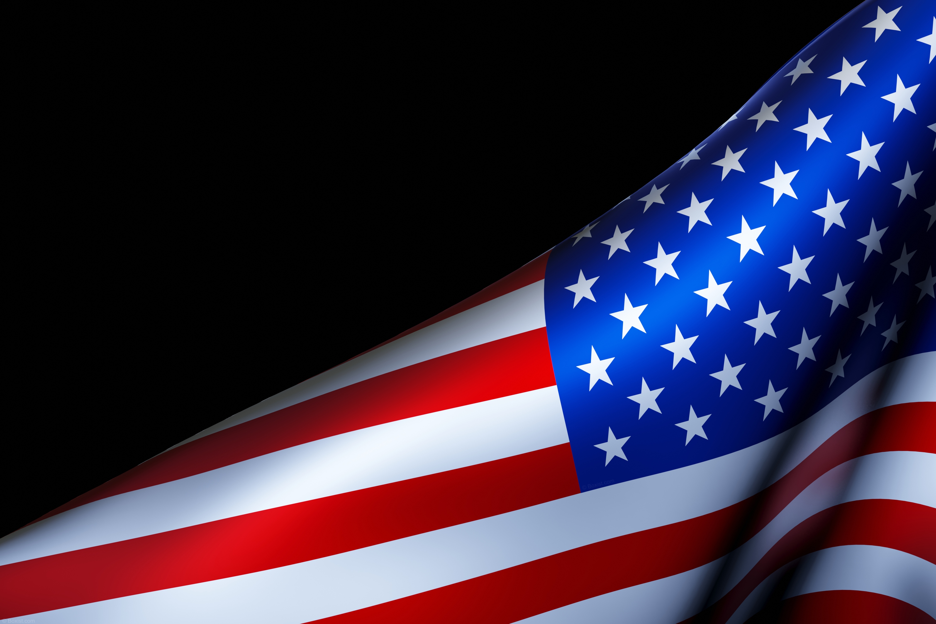 In this image, a large and shiny part of the American flag is depicted, waving proudly against a black background. The vibrant colors of the flag, including the bold red and bright white stripes, along with the deep blue of the canton, stand out prominently in the scene. As light reflects off the surface of the flag, certain parts shine and glisten, enhancing its beauty and symbolism. The waving motion of the flag adds a dynamic element to the composition, evoking a sense of patriotism and pride. The American flag is a powerful symbol of the values and principles upon which the United States was founded. The thirteen stripes represent the original thirteen colonies that declared independence from Great Britain, while the fifty stars represent the fifty states of the Union. Overall, this close-up view captures the majesty and significance of the American flag, reminding viewers of the country’s rich history and enduring commitment to freedom and democracy.